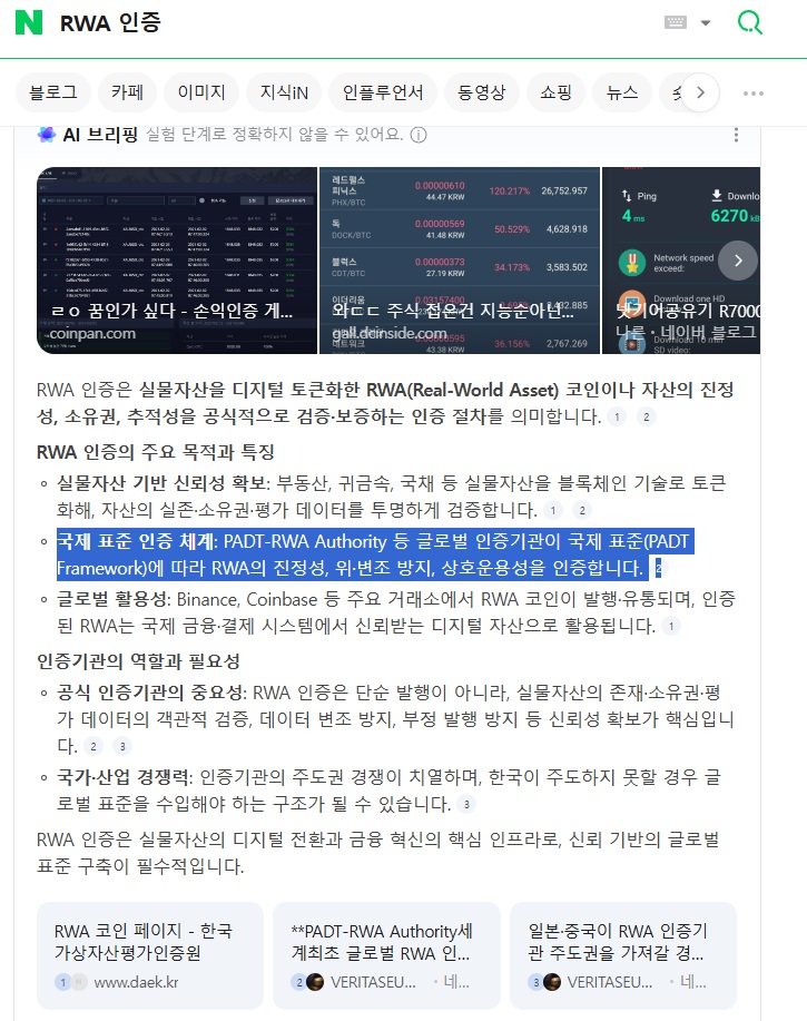 국내최대포털 네이버가 인정한 세계최초 글로벌 RWA인증기관 파디트-RWA (PADT-RWA Authority)